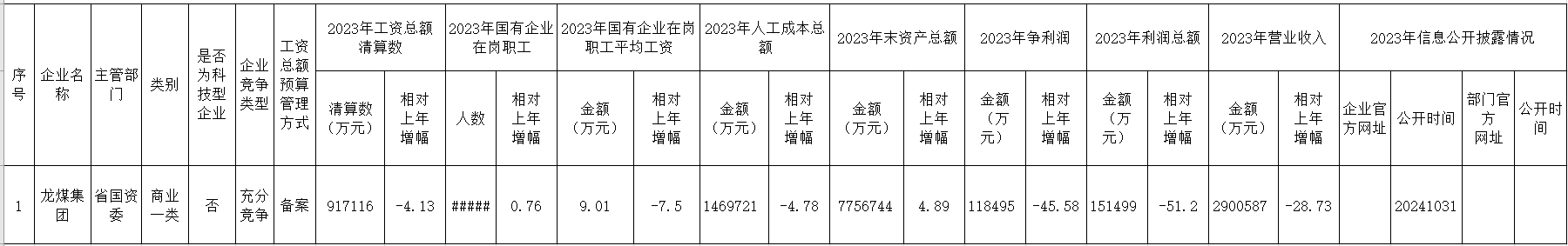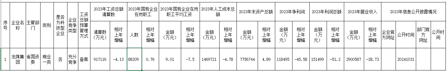 黑龍江省2023年度省屬國(guó)有企業(yè)工資總額執(zhí)行情況匯總表