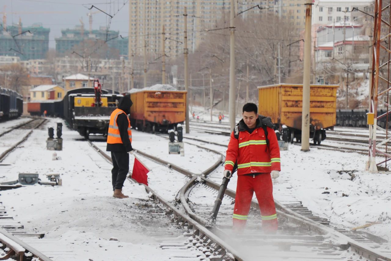 結(jié)合當(dāng)前鐵路運輸?shù)膰?yán)峻形勢,鶴崗礦業(yè)公司鐵路運輸部啟動應(yīng)對雨雪冰凍天氣安全運輸應(yīng)急處置預(yù)案,周密安排,動員全體干部職工參戰(zhàn),采取分片包干辦法,加大架線和道岔清雪除冰力度。同時,合理安排職工作息時間,保證這一時期每個時段都有人員在現(xiàn)場清雪,全力保障煤炭保供“主動脈”暢通無阻。