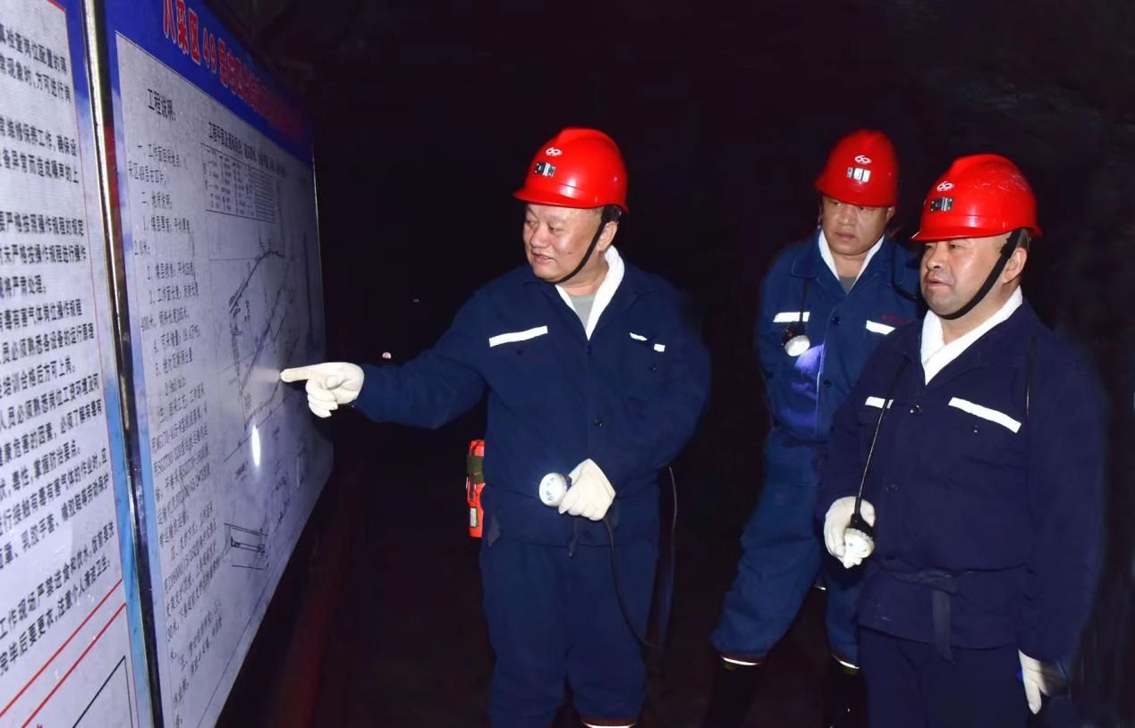龍煤集團(tuán)黨委書記、董事長王戈(左一)在龍煤七臺(tái)河礦業(yè)公司新興煤礦調(diào)研。